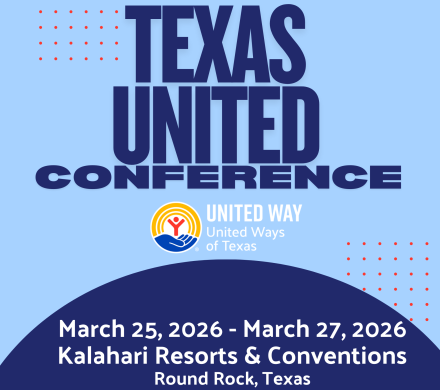 Join us for the Texas United Conference, taking place March 25–27, 2026, at the Kalahari Resorts & Conventions in Round Rock, Texas. This premier event brings together United Way professionals and partners from across the state for three days of collaboration, learning, and inspiration. Book your room here.